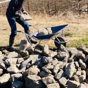 しかし、思いがけないことに、植物の根は石に当たると毛細根を増やし植物ホルモンを活性化することがわかってきました。作業を阻んで邪魔だと思っていた多くの石が、実はぶどうの根を刺激し、強く育てるための大切な鍵だったのです。